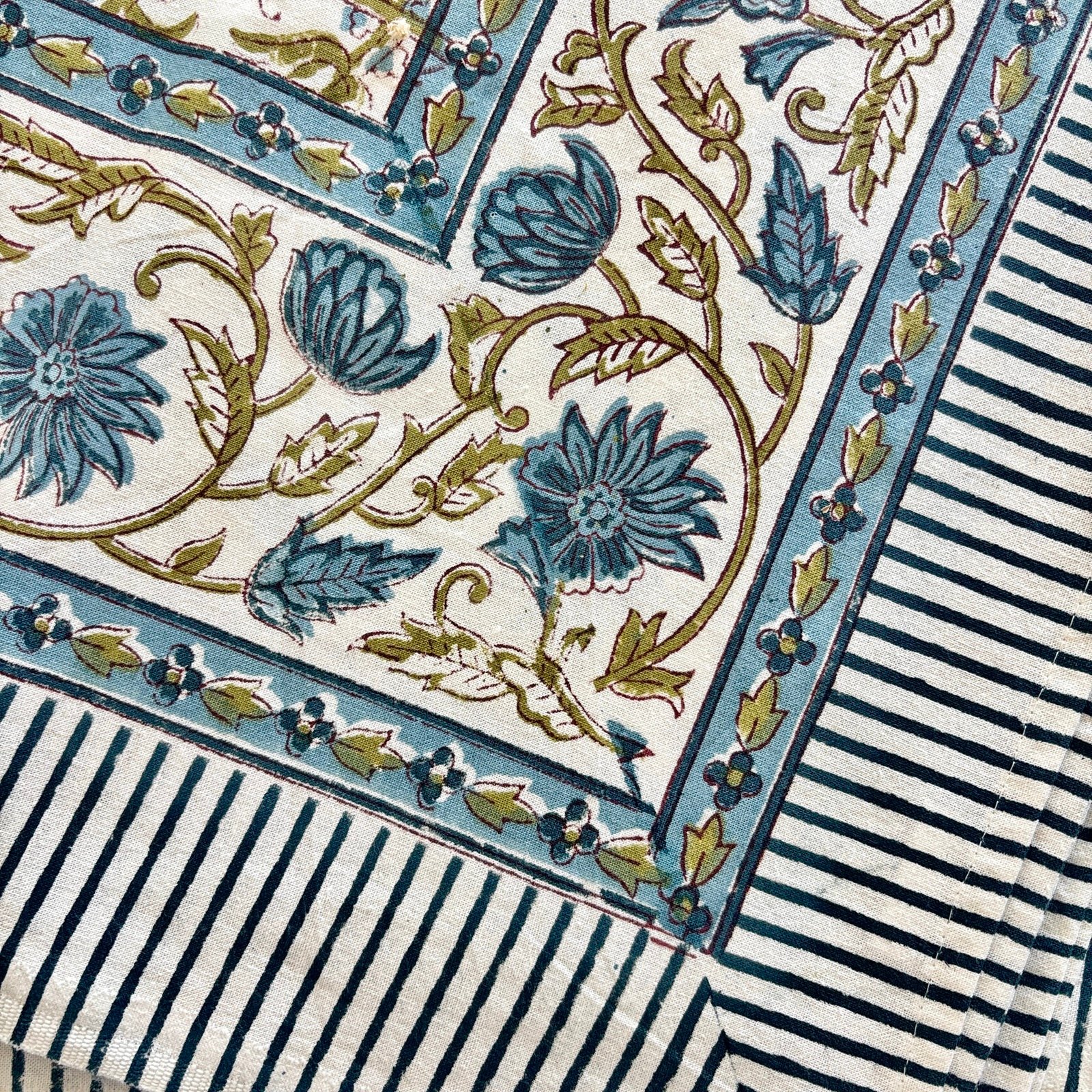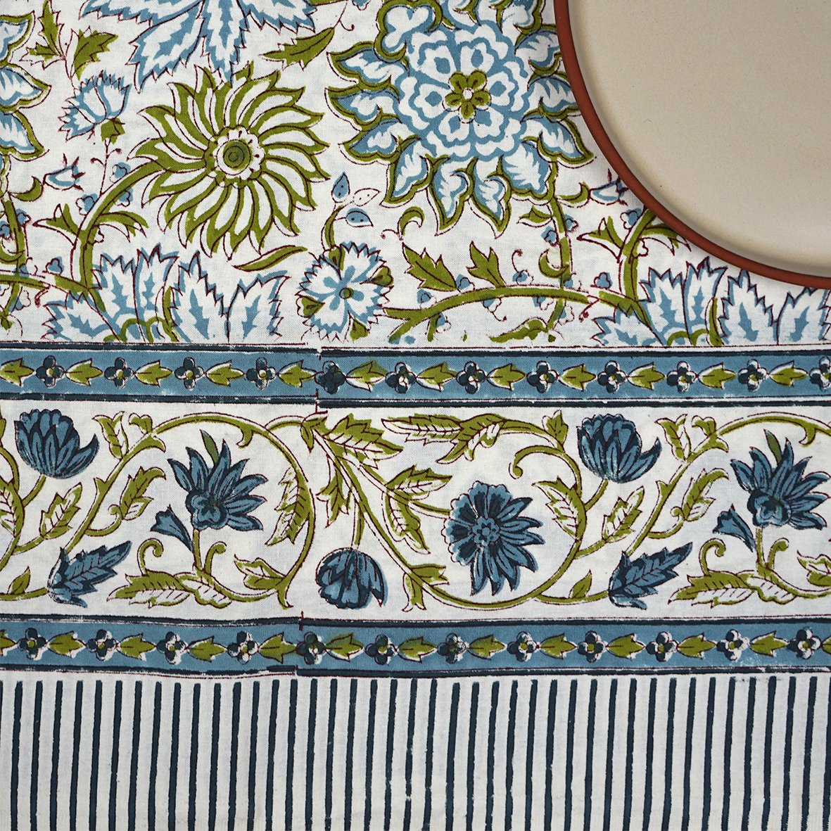 Nappe Barbizon bleu en coton imprimé blockprint