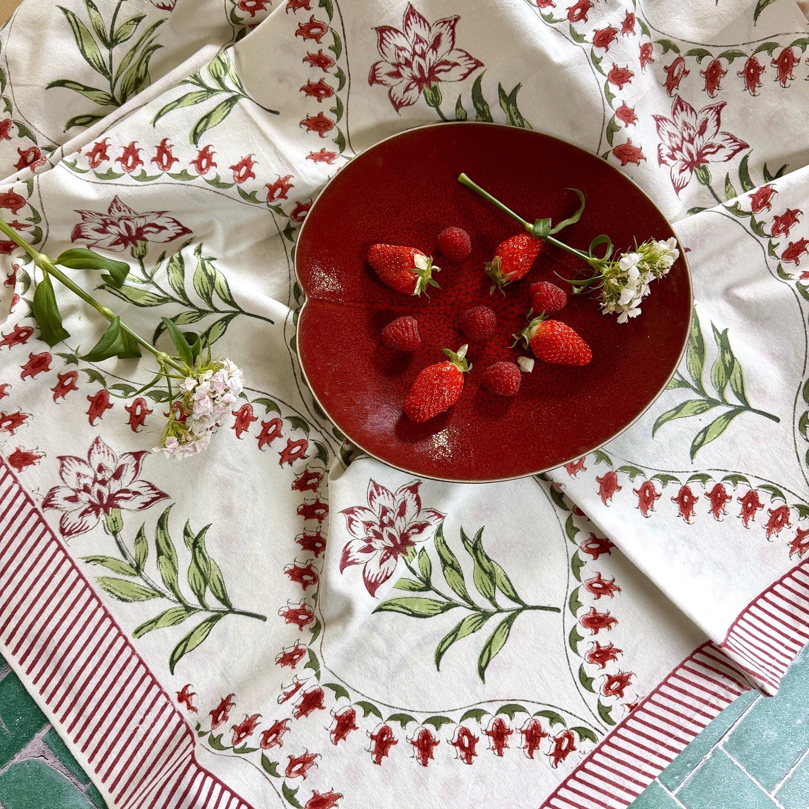 Superbe imprimé floral inspiré des jardins de palais indiens pour dresser de jolies tables pour la belle saison , aussi bien en intérieur où il apportera une touche bohème et nature qu’en extérieur. Pourquoi ne pas l’emmener en pique-nique pour un déjeuner très chic sur l’herbe.