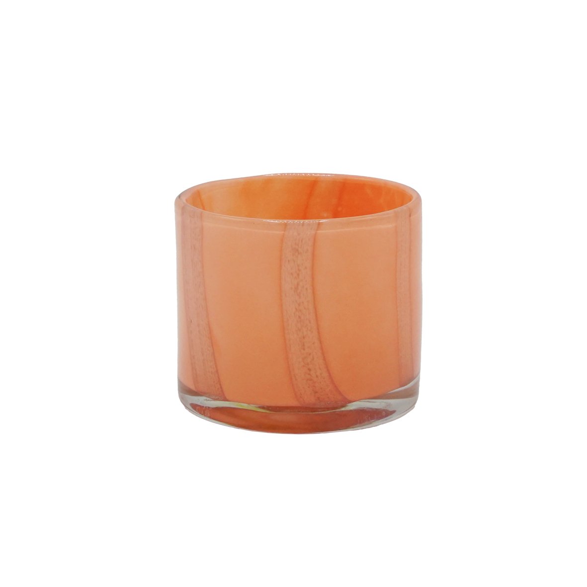 Photophore en verre soufflé bouche artisanalement dans un joli coloris peach avec rayures lilas